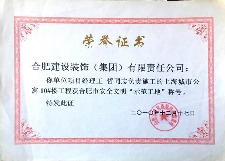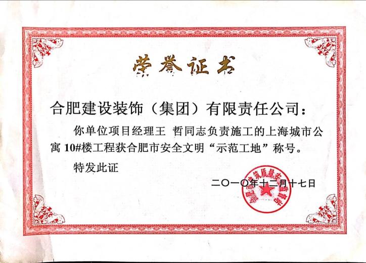 2010年合肥市安全文明示范工地--上海公寓10#楼