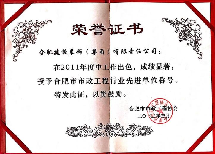 2011年合肥市市政工程行业先进企业