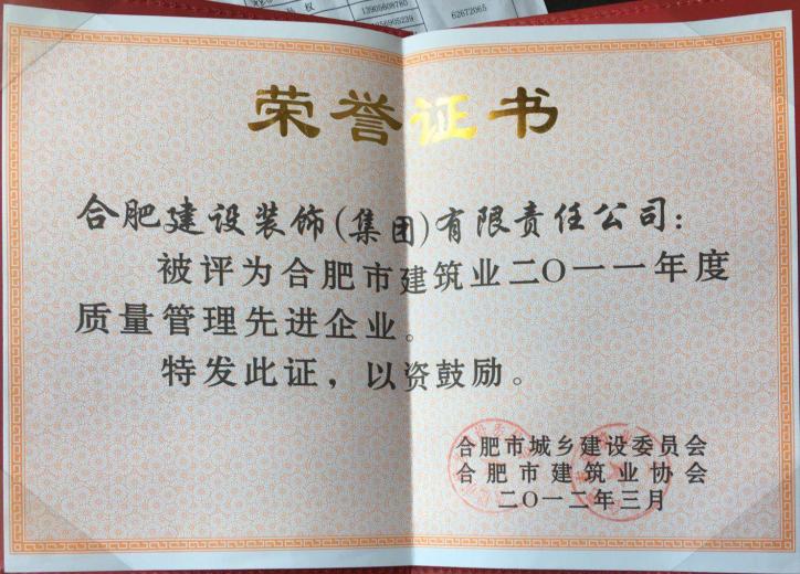 2011年度质量管理先进企业