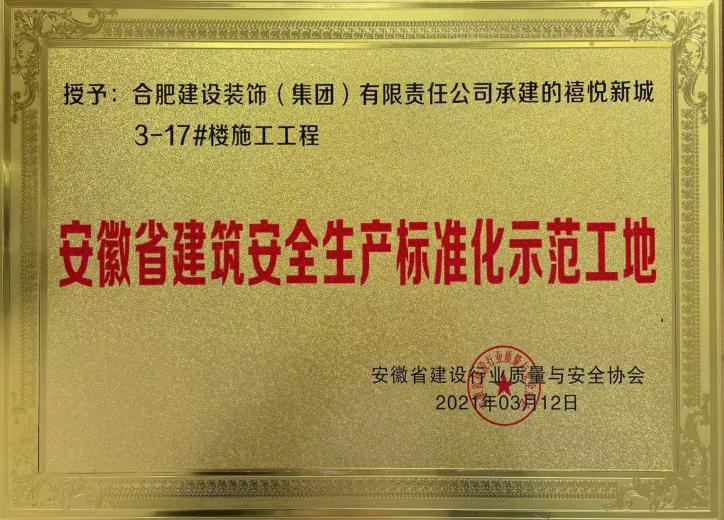 禧悦新城3-17#楼施工工程——安徽省建筑安全生产标准化示范工地奖牌