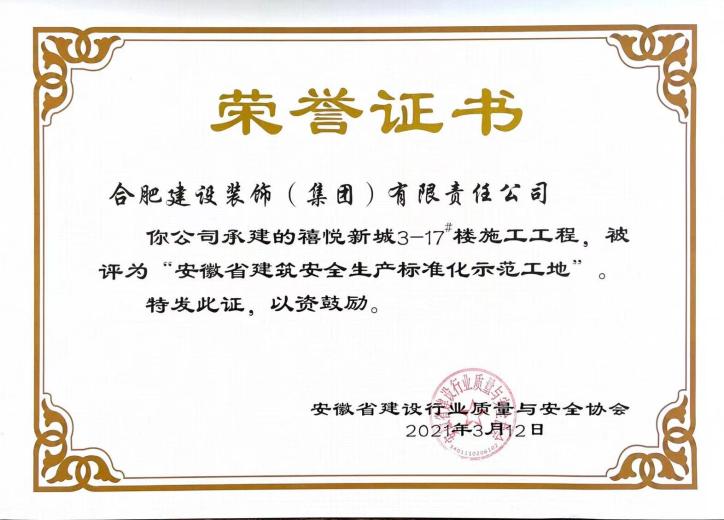 禧悦新城3-17#楼施工工程——安徽省建筑安全生产标准化示范工地