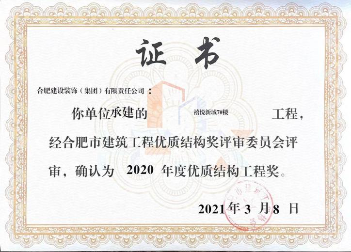 禧悦新城7#楼——2020年度合肥市建筑工程优质结构奖