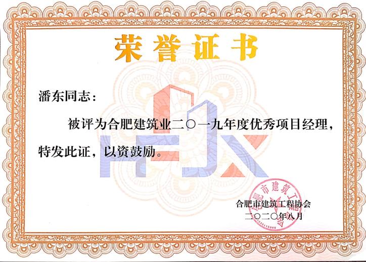 合肥市建筑业2019年度优秀项目经理——潘东