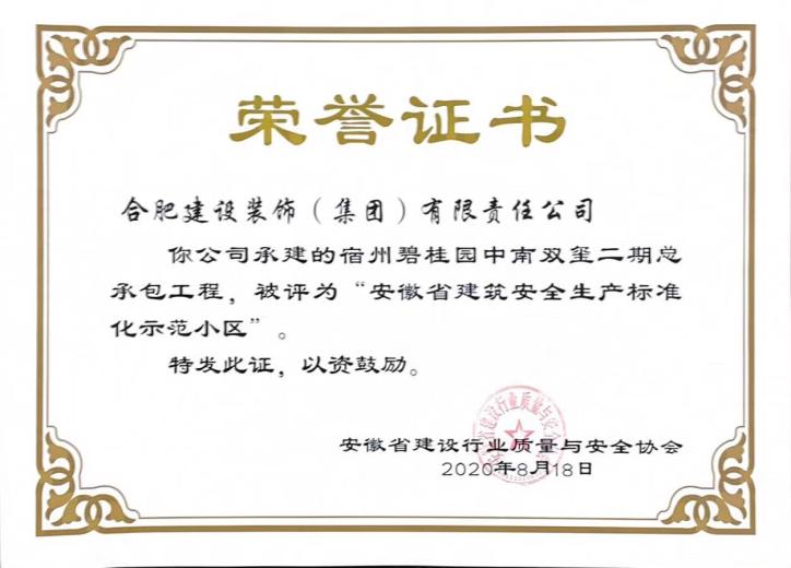 宿州碧桂园中南双玺二期总承包工程--安徽省建筑安全生产标准化示范小区