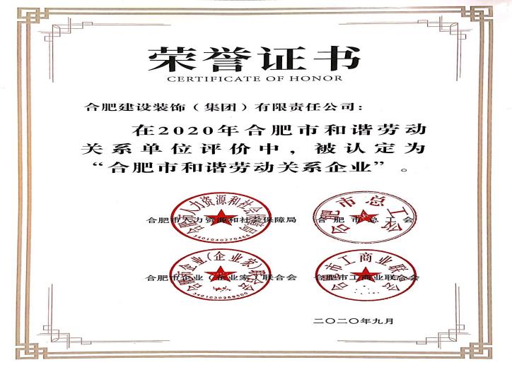 2020年合肥市和谐劳动关系企业
