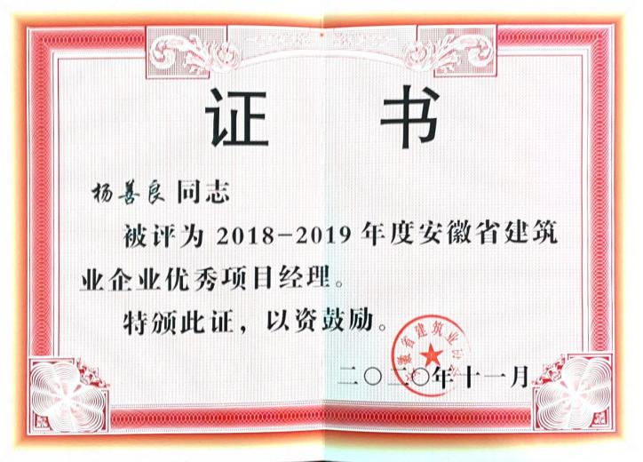 2020年安徽省建筑业企业优秀项目经理--杨善良