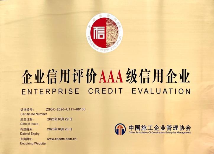 关于2021年度建筑业AAA级信用企业评价结果的公示