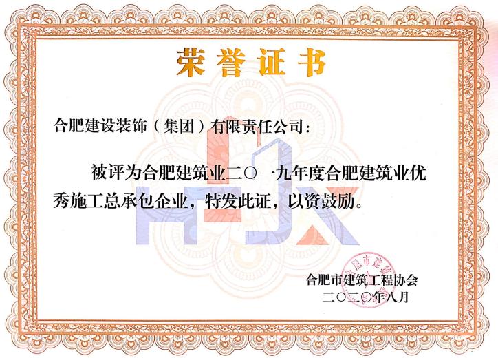 2019年度合肥建筑业优秀施工总承包企业