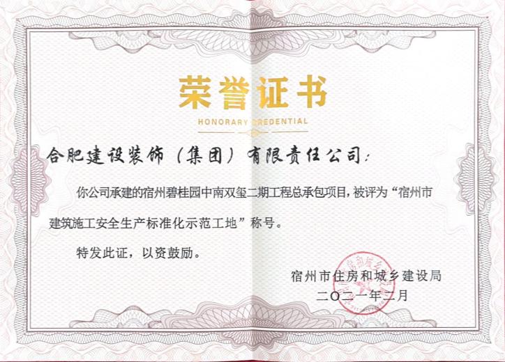 >宿州碧桂园中南双玺二期总承包工程--宿州市建筑安全生产标准化示范工地
