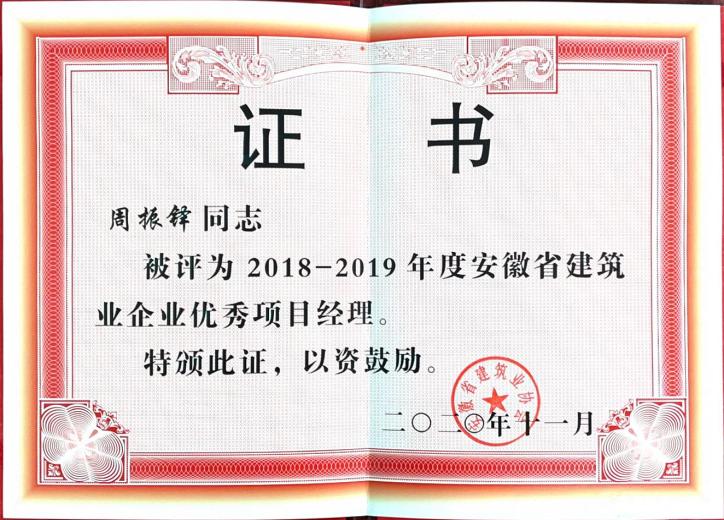 >2020年安徽省建筑业企业优秀项目经理--周振铎
