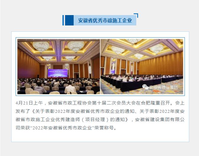 >集团荣获“2022年安徽省优秀市政施工企业”